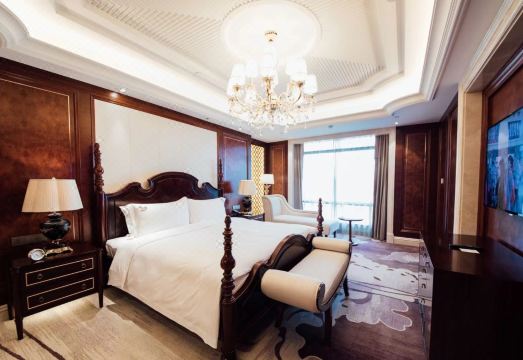 宾馆地处珠城之冠——龙子湖南岸,坐落於被称为“古民居建筑艺术宝库”的湖上升明月——古民居博览园内,环境清幽,景色怡人。距蚌埠火车南站仅10分钟车程。宾馆建筑羣落颇具汉唐之风,“四水归堂,五方相连”的布局方式与园区内的古民居相得益彰;其建筑空间灵动变幻,高低错落,蜿蜒长廊联结四方建筑,依山傍水,与自然融为一体。宾馆中西结合、优雅简约;各具特色的餐厅提供各类精选中、西环球美馔佳酿;极具中式风情的茶吧带您品茗茶味人生;一流的会议及宴会设施,配以健身房、游泳池、小童乐园、水疗房、瑜伽房、棋牌室等康体项目,为宾客们提供卓越的住享体验。酒店会根据实际情况,在用餐人数较少或用餐间隔时间较长的情况下,采用现场制作主食及其他食物的自助形式。每日赠送Minibar享用,免费每日湿洗或者乾洗2件(除冬季衣物)不可叠加;洗衣取回时间次日下午13点以後,法定节假日免费洗衣除外(无法提供)